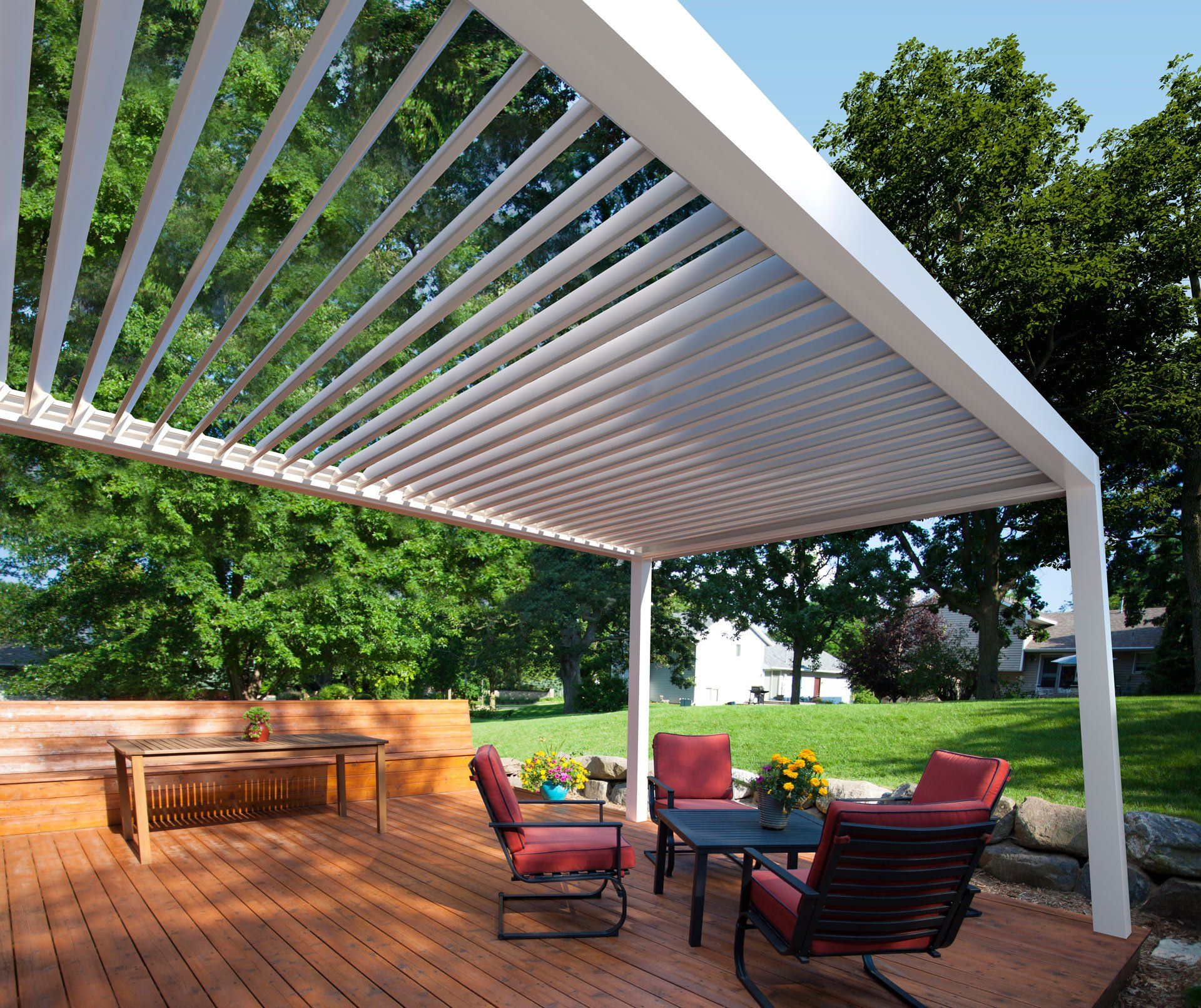 A phenomenon in pergolas. Elegant, robust, with hidden screws, with a customizable design, watertight and with the possibility of motorization. Buy a RA Bioclimatic Pergola and then you will buy the house; in short, you can live there.
