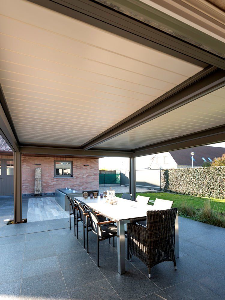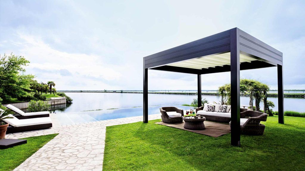 When the roof slats are completely closed, they provide 100% protection from the Sun’s harmful UV rays as well as shelter from the rain.