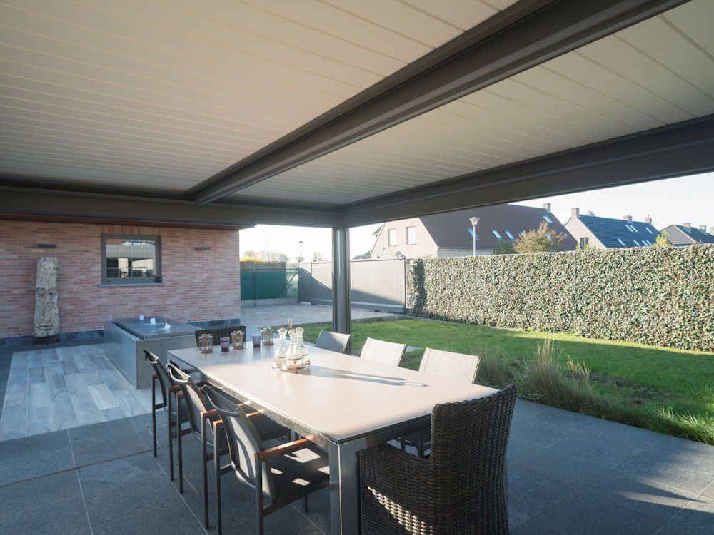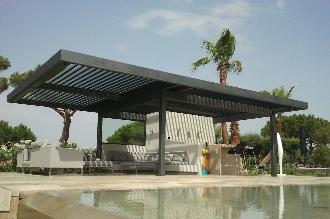 The Reference is a stylish aluminium structure that covers areas up to 7m x 7m and features adjustable aluminium roof slats.