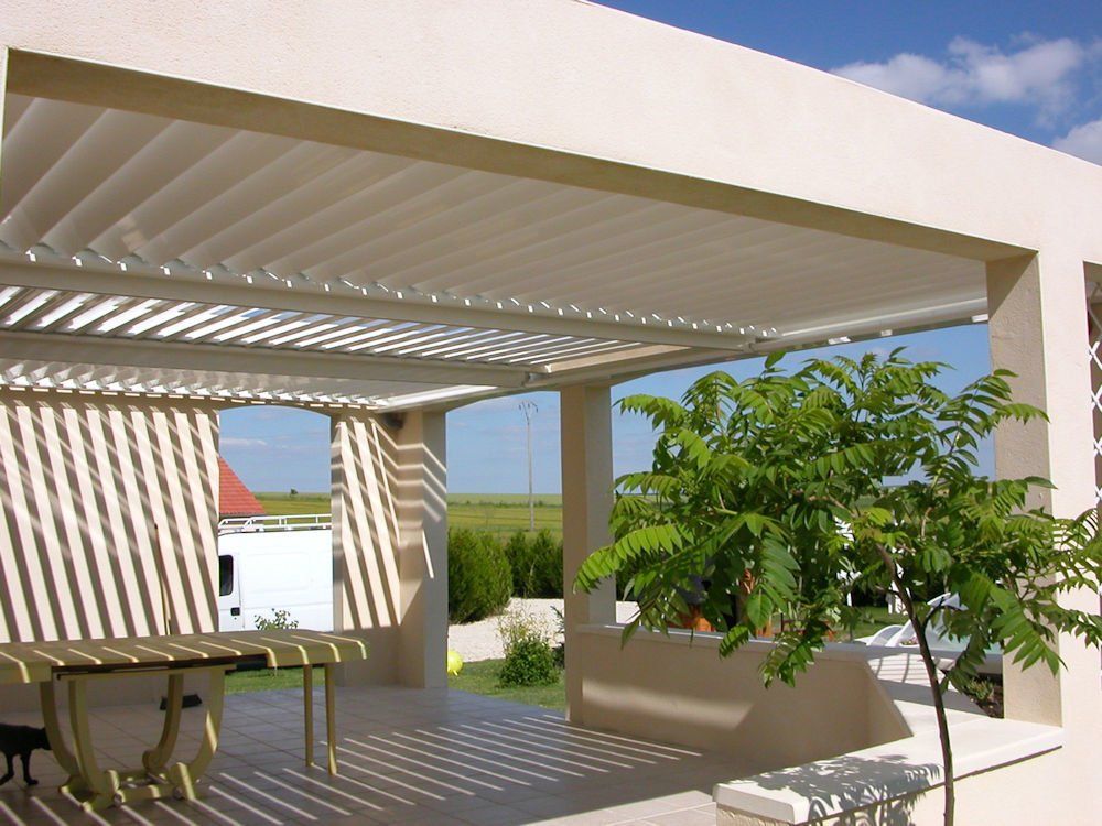 The Reference is a stylish aluminium structure that covers areas up to 7m x 7m and features adjustable aluminium roof slats.
